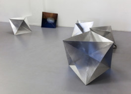 In her exhibition at KHM Gallery, Anika Schwarzlose presents a range of works, each probing from a different angle into the borderland of adaptation and impact, illusion and truth. Amongst diamond-shaped sculptural elements, that resemble radar reflectors, a series of videos is displayed, depicting official buildings - symbols of power and societal organization, which are juxtaposed with sheets of green - engaging a colour that is commonly used in the film industry to mark fields of filmed material designated for being cut out and replaced by fictitious content.