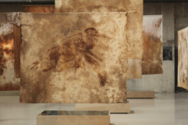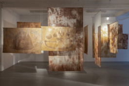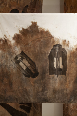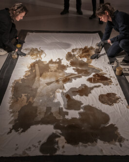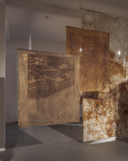 We see the soil of the Hembrug terrain as a physical archive that tells its own story. In parallel, we investigated the photographic archive of the Hembrug factory and selected images which depict working conditions, advertisements, and technical documentation. A series of large textiles brings these two archives in contact through a photochemical process, called soil chromatography. The polluted soils reveal and transform archival images, both archives interact and collide with each other.
